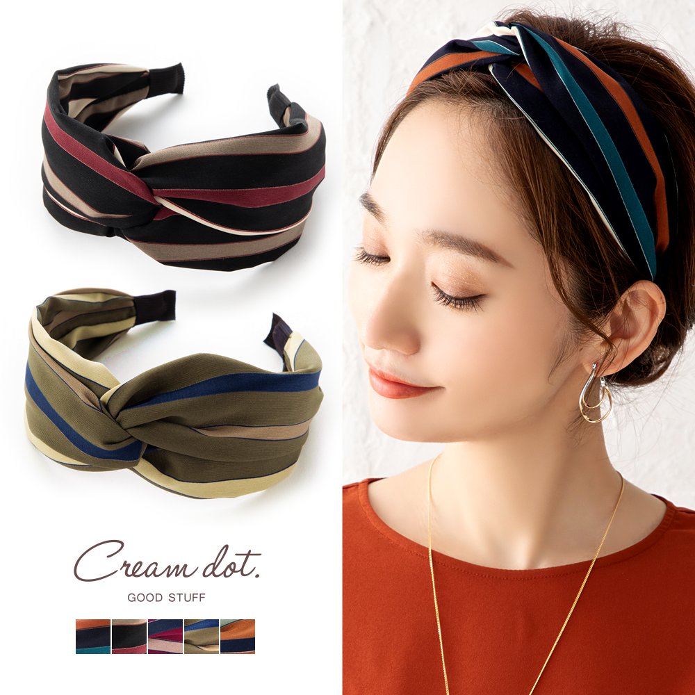 マルチストライプ柄が大人可愛いアクセントを加えるワイドカチューシャ。いつものヘアスタイルもワンタッチ装着でこなれ感アップ。フロント部分でクロスさせたデザインが程良いボリュームを作り、小顔効果も期待できます◎