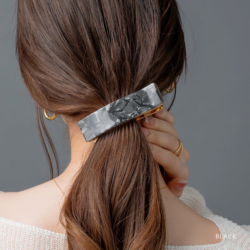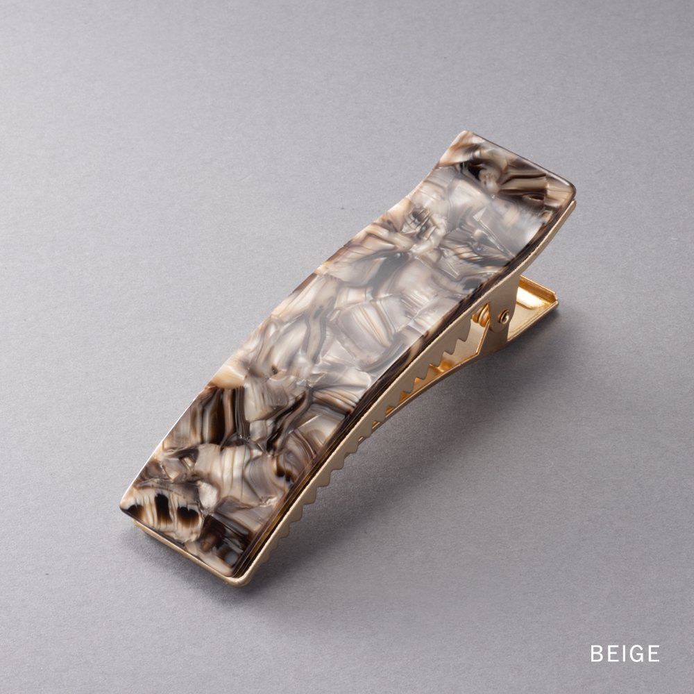 マーブル柄の大人顔ヘアクリップ。シックな色合いとおしゃれで高級感ある柄がこなれた印象を演出します。緩やかにカーブしたスクエアプレートが大人ヘアをグッとランクアップしてくれます◎