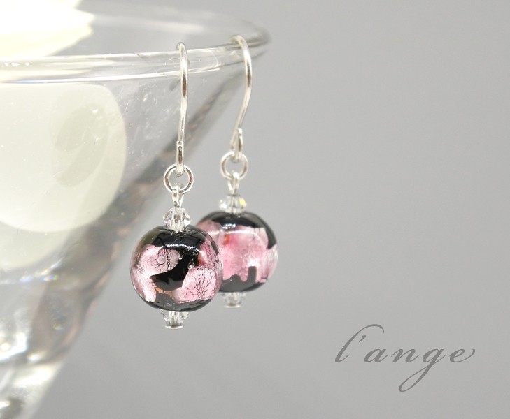 ピンクの色合いが、かわいい、とんぼ玉ピアス