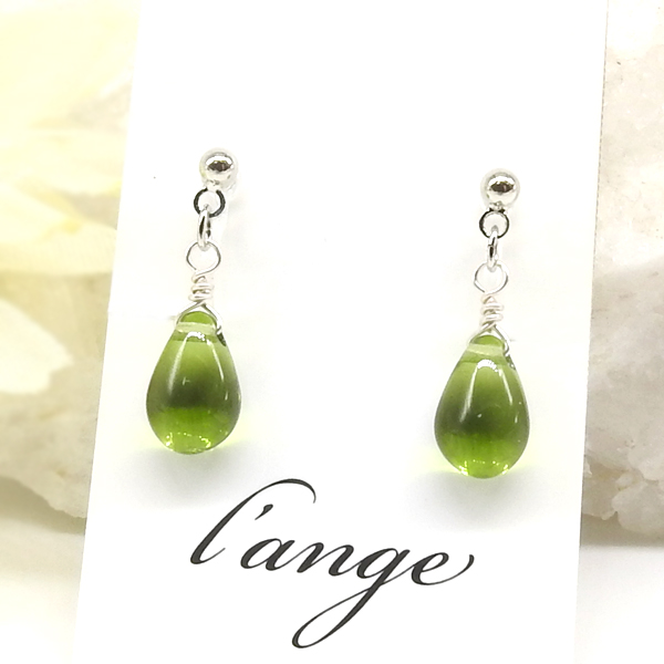 オリーブグリーンの色合いと、ぷっくりとした雫が可愛らしいイヤリングです。