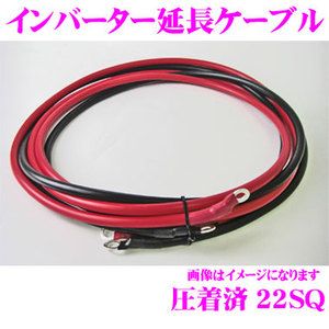 ・インバーター延長用ケーブル、22S8R8です。 ・KIV(電器機器用ビニル絶縁電線)の太さ4AWG(22SQ)です。 ・インバーターインストール時に付属ケーブルでは長さが足りない場合、端子の径が合わない場合などに便利です。 ・500Wインバーター等にお使いいただけます。 ・その他長さや接続端子の異なるケーブルは下部ラインナップよりインバーターに合わせてお選びください。