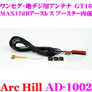 ・アーク ヒルのMAX17dBアースレス ブースター内蔵ワンセグ/地デジ用アンテナ GT16、AD-1002です。 ・フィルムだけなので目立たなく、ガラス内側に装着するのでそのまま洗車できます。 ・受信チャンネルはUHF13〜62CH、周波数は470MHZ〜770MHZです。