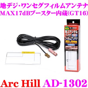 ・アーク ヒルのMAX17dBアースレス ブースター内蔵ワンセグ/地デジ用アンテナ GT-16、AD-1302です。 ・フィルムだけなので目立たなく、ガラス内側に装着するのでそのまま洗車できます。 ・受信チャンネルはUHF13〜62CH、周波数は470MHZ〜770MHZです。