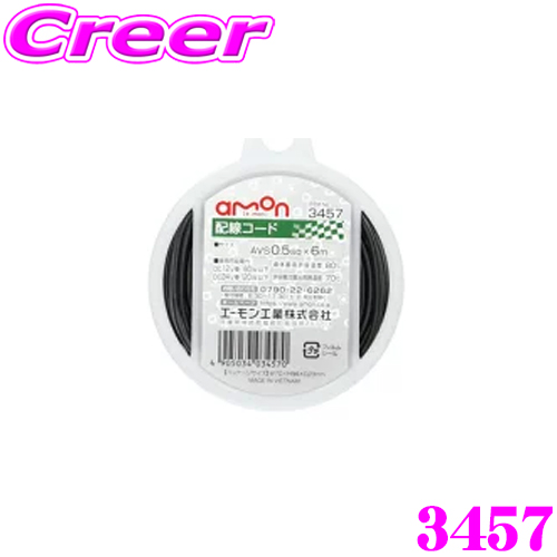 エーモン工業 3457 配線コード 耐油性・耐候性に優れた自動車用配線コード DC12V車60W DC24V車120W 【AVS0.5sq×6m/黒】