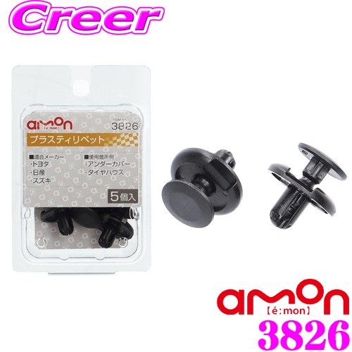 エーモン工業 3826 プラスティリベット(7.0φ黒) トヨタ・日産・スズキ車用 5個入り