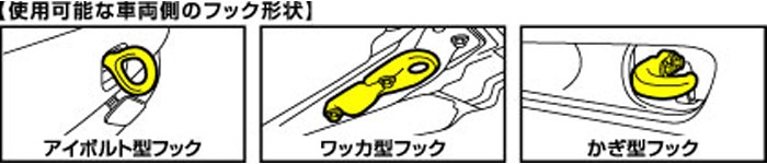 | ・BALのけん引伸縮ベルト 3t、1623です。 ・急なトラブルに備えて安心!けん引用のロープです。本製品は普通自動車に対応します。 ・伸縮性のあるベルトがたるみや踏みつけを防ぎます。 ・安全設計のフックで伸縮時の脱落を防ぎ、安心してお使いいただけます。 ・対応フック形状(車両側)はアイボルト型・ワッカ型・かぎ型の3つです。 ・こちらのシリーズには軽自動車/小型自動車向けの1.4tタイプ、小型自動車/中型自動車向けの1.8tタイプもあります。 【製品仕様】 安全荷重:3t 適合車種:普通自動車 切断荷重:5t 伸張時:4m おもな適合車種例