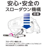 ・ アルミ製11.7kgと超軽量で、ダブルピストンで作業が早いスピードリフト機構に加えてスローダウン機構搭載!