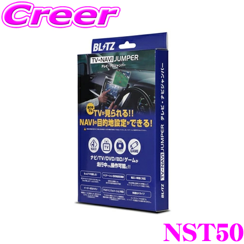・BLITZ(ブリッツ)のTV-NAVI JUMPER (切り替えタイプ)、NST50です。 走行中にテレビやDVD、ブルーレイなどをモニターで楽しめる機能をプラス。お子様や友人の同乗者が退屈せずロングドライブも楽しめます。 ・本体と車種別専用ハーネスをセットパッケージしているので、別途必要なものはなく、カプラーオンのみの簡単取付けです。 ・テレビ視聴の際は1度、目的地設定の場合はさらにもう1度スイッチを押すことでテレビとナビを切替えることができます。 ・お好みの場所に取付けできるスイッチアダプターと小型化スイッチに加え、自動車メーカー別に専用開発した「サービスパネルアダプター」を対応車種の製品に同梱。車両側の空きパネルへまるで純正のスイッチのようにスマートに装着する事ができるので、インテリアに後付け感を出したくない場合に最適な装着方法です。