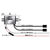 【仕様】 入力:DC+12V〜24V・マイナスアース 出力:DC+5V/MAX3A (15W) 作動温度範囲:-20℃〜+80℃ 外形寸法:W45mm×H32mm×D18mm (突起部除く) ケーブル長:USBケーブル:約35cm 電源線(赤)/アース線(黒):各約60cm ヒューズ:2A ミニ管ヒューズ パッケージングサイズ:W70×H196×D42 (mm) 製品重量:約80g (ハーネス・ヒューズ類含む) パッケージング総重量:約115g (箱・梱包材含む)