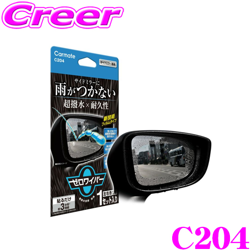 カーメイト C204 ゼロワイパー フィルムタイプ サイドミラー用 車 洗車 撥水