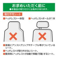 ■取り付け不可シート ・ヘッドレスト一体型 ヘッドレストポールが1本 背面にアシストグリップやテーブル等がついているシート ・ヘッドレストが取り外せないシート 衝突時にヘッドレストが自動で移動(可動)するシート ・耐荷重 本体90kg フック(片側)1kg