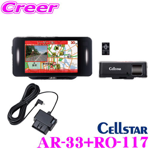 セルスター AR-33+RO-117 レーダー探知機+OBDII接続コード セット 無線LAN搭載 OBDII接続対応 3.2インチMVA液晶 日本国内生産三年保証