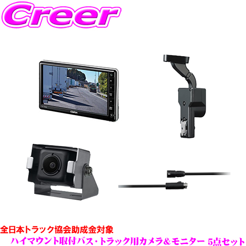 バス トラック用 クラリオン 小型カメラ + 7インチモニター + モニターブラケット + 18mケーブル + 車種別ブラケット066-100のセット
