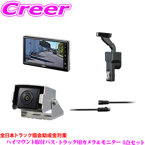 バス トラック用 クラリオン 小型HDカメラ + 7インチモニター + モニターブラケット + 23mケーブル + 車種別ブラケット063-100のセット