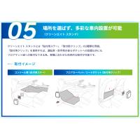 ・クリーンエイト スタンドには「貼付用ステー」「取付用クリップ」の2種類を同梱。「取付用クリップ」を使用すれば、運転席・助手席の後ろポケットへの設置以外にもフロアマット縁への取付もできる為、車種に合わせた効率的な取付が可能です。