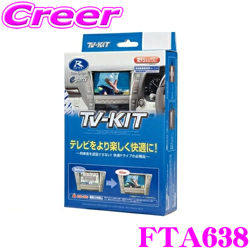 ・データシステムのテレビキット、FTA638です。 ・停車中以外は映像が映らない純正ナビ。でも、このTV-KITがあれば走行中でもTV/DVD※が楽しめます。これさえあれば、同乗者を退屈させません。 ※DVDビデオ再生機能を搭載している一部車種のみ可能(適合表参照)。 ・取り付けるだけで走行中にテレビ放送が映るようになります。切替タイプのような追加スイッチの操作は不要です。 ・車両側のAVコンピューターとハーネスの間にTV-KITから出ているコネクターを割り込ませるだけで、簡単取り付けが行えます。(一部車種除く)