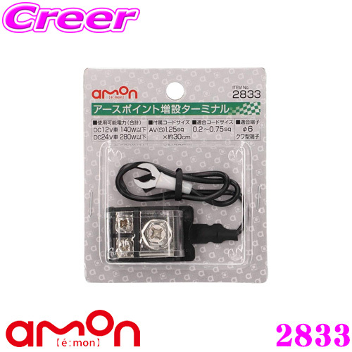 ・エーモン工業のアースポイント増設ターミナル、2833です。 ・電装品のクワ型端子付アースコードを加工せずに接続できます。 ・配線コードを端子を使用せず4本、クワ型端子の位置をずらして4本、最大8本のアースを1つにまとめることがきます。