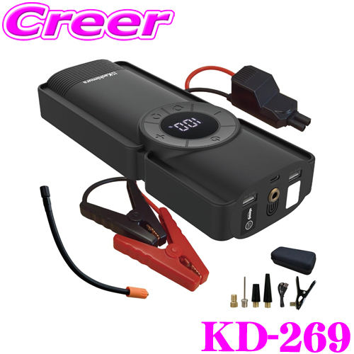 カシムラ ジャンプスターター 8000mAh KD-269 電動コンプレッサー付き バッテリー上がり エンジン始動補助 ジャンプスタート機能