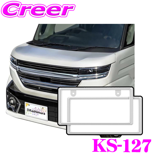 カシムラ KS-127 ナンバーフレーム ホワイト フロント リア 2枚セット ナンバープレート 変形 防止 普通車 軽自動車 対応