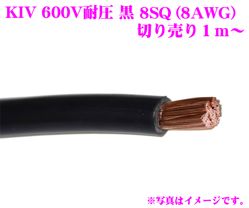 【KIVケーブル 600V耐圧 8SQ(8AWG) ブラック】