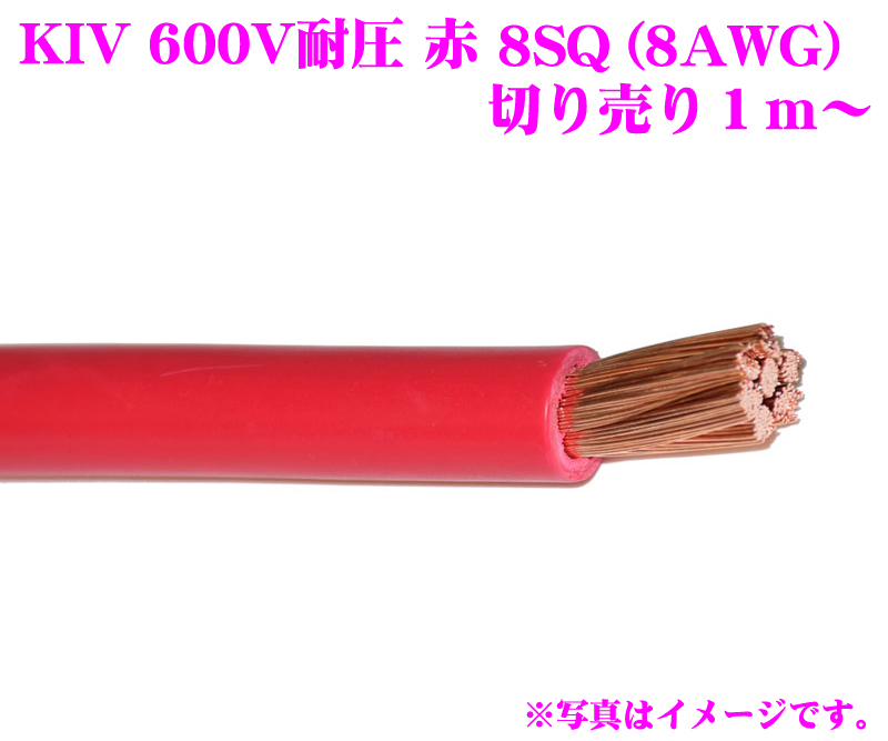 【KIVケーブル 600V耐圧 8SQ(8AWG) レッド】
