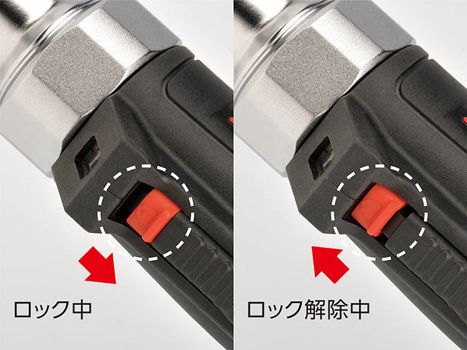 ※緩め始めなど、大きな力が必要な場合はトリガースイッチをロックしラチェットハンドルとして使用ください。