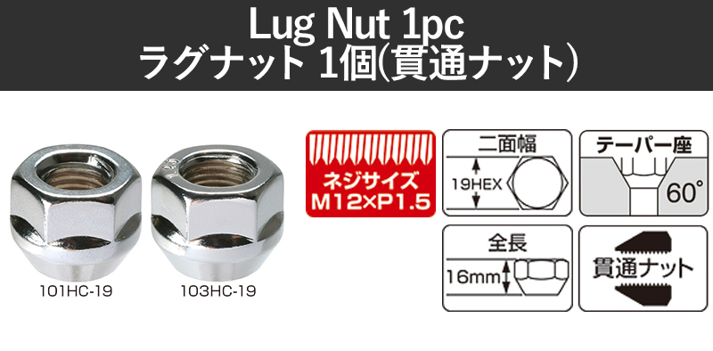 KYO-EI ホイールナット 101HC-19 ラグナット M12×P1.5 クロームメッキ 1個入り 19HEX 16mm 貫通ナット ホイール ドレスアップ