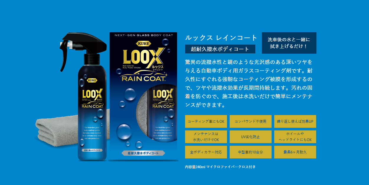 呉工業 KURE ルックス レインコート 1190 超耐久 撥水ボディコート ガラス コーティング剤 流撥水性 光沢 ツヤ 耐久力 汚れの固着 防ぐ