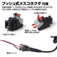 シガーソケット、ワニ口クリップの2種類のアダプター付属で12V用の様々なカーパーツに対応します。