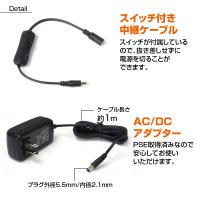 ・商品内容:AC/DCアダプター、スイッチ付き中継ケーブル、ワニ口クリップ、シガーソケット、プッシュ式メスコネクタ