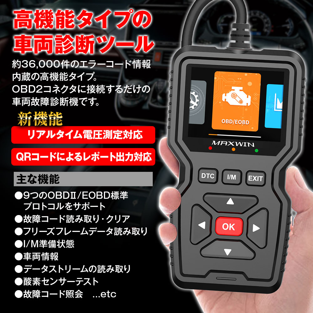 ・マックスウィンのOBD2 車両診断機、OBD-DIA02-PLUSです。