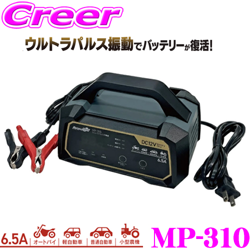 ・大自工業のウルトラパルス充電器、MP-310です。 ・1秒間に15,000回の高周波パルス振動でサルフェーションを除去! ・パルス充電を行うことで、長時間時放電状態だったバッテリーや購入から5年以上経ったバッテリー内部に発生するサルフェーションを除去し、バッテリー寿命を延ばす効果が期待できます。 ・サルフェーションが一度発生してしまうと、通常の充電作業では除去できず、これまでプロ仕様の専門的な機器や、専門家の知識と経験が必要でしたが、Meltecのパルス充電器なら簡単にパルス充電を行うことができ、古いバッテリーの復活や寿命を延ばすことができます! |