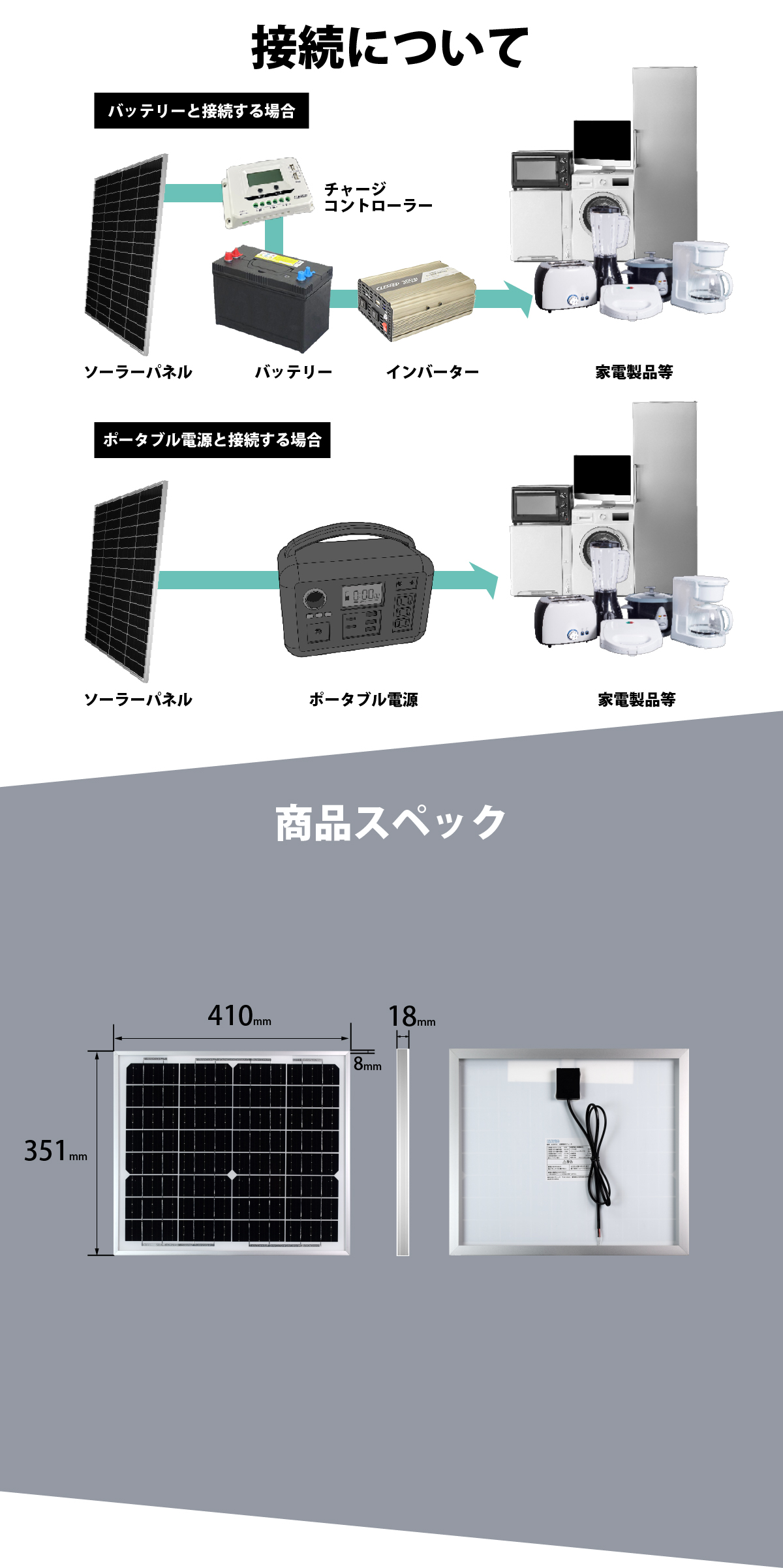 注意事項:本商品はソーラーパネルのみとなり、使用の際にはチャージコントローラーが別途必要ですのでご注意ください。 | |