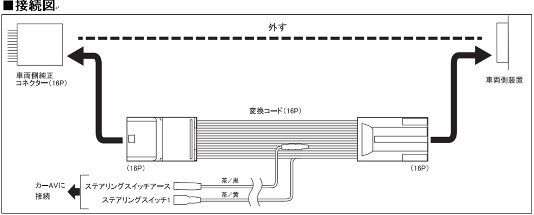 ・日産 E13 ノート用16Pコネクターのステアリングリモコン配線を市販カーAVに接続するための配線コードです。