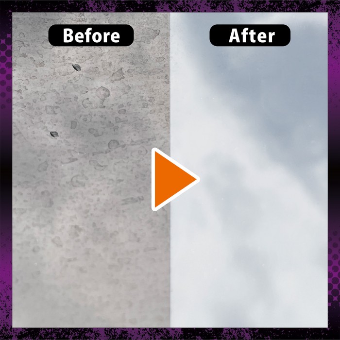 独自に配合した新処方による特殊研磨剤+ティアドロップパッドによる相乗効果でクリーナー効果を最大限引き出します。誰でも簡単に時間を掛けずにガラスをクリアにできます。