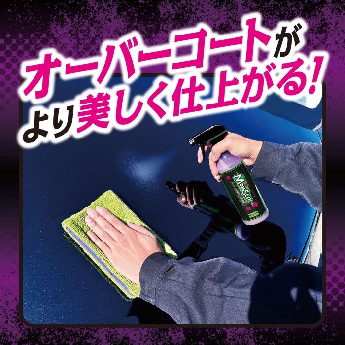 | 本品で施工後は本品の被膜がプライマーとして下地を整え、オーバーコート施工に適した状態に仕上がります。 市販のコーティング剤で施工すれば密着性が高まり効果を長持ちさせます。 ※疎水タイプのコーティング剤を使用する場合は弱くなります。 |