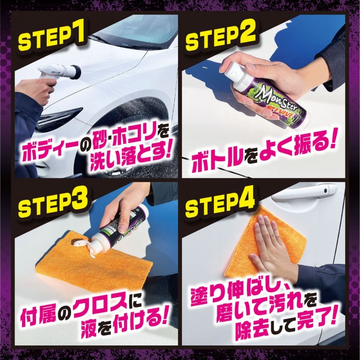 | ボディーに付着したまま放置した状態の水アカ・雨ジミ・くすみなどは、油分を含んだガンコな汚れになってカーシャンプーでも落ちなくなります。 本品で施工すれば簡単に時間をかけず除去できます。 |
