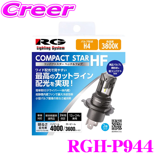 RG レーシングギア パワーLED ヘッド&フォグ RGH-P944 H4 Hi 4000lm / Lo 3400lm 3800K 電球光 12V/24V兼用 車検対応 2年保証