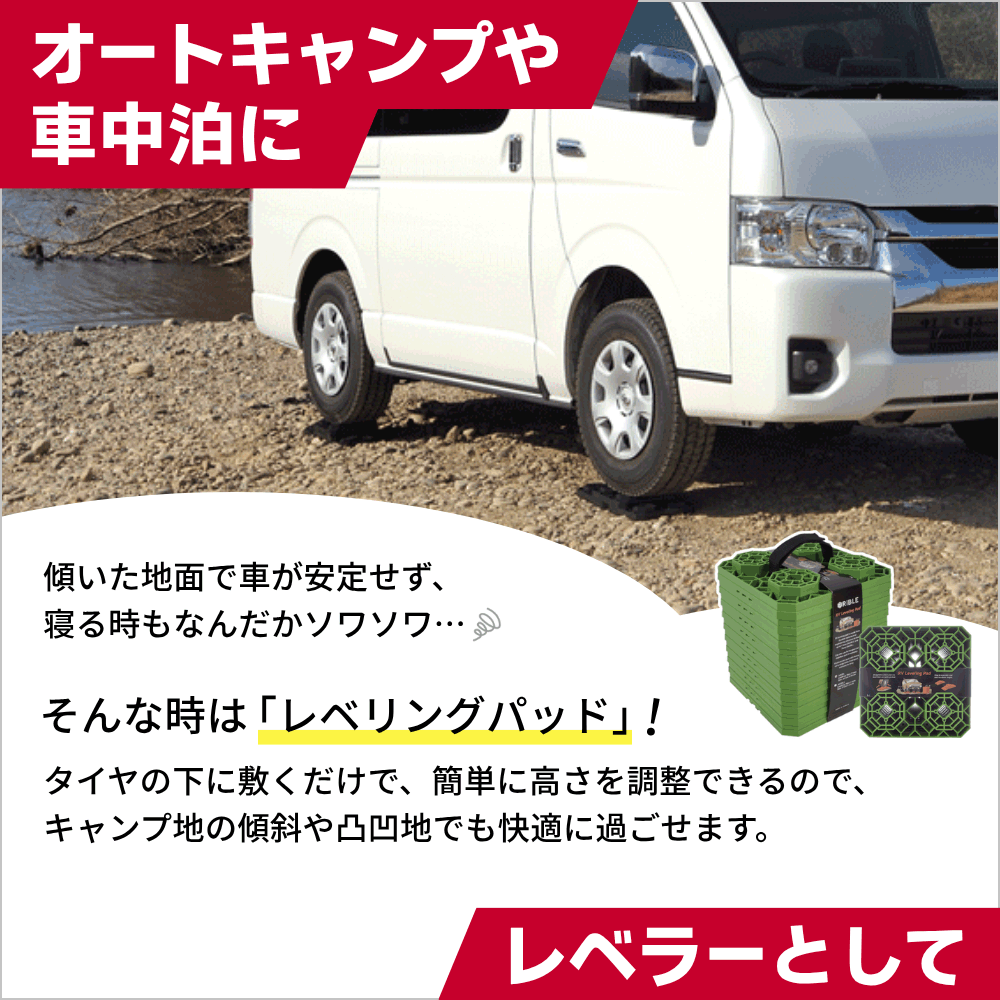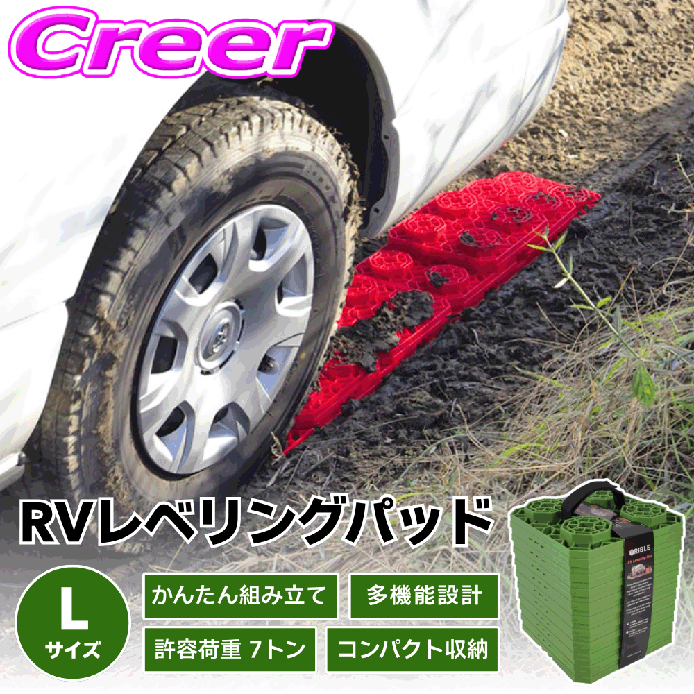 RiBLE RVレベリングパッド グリーン Lサイズ 10枚入り 車 水平 砂 ぬかるみ 雪 スタック 脱出 グッズ アウトドア 緊急 車