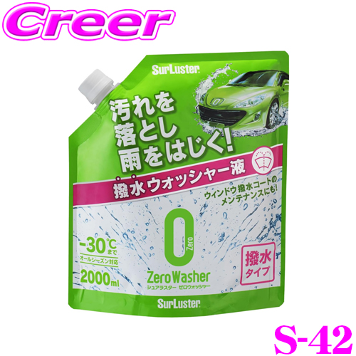 シュアラスター S-102 ゼロウォッシャー 撥水タイプ 【撥水ウォッシャー液】 【雨や雪を弾いてクリアな視界を確保!】