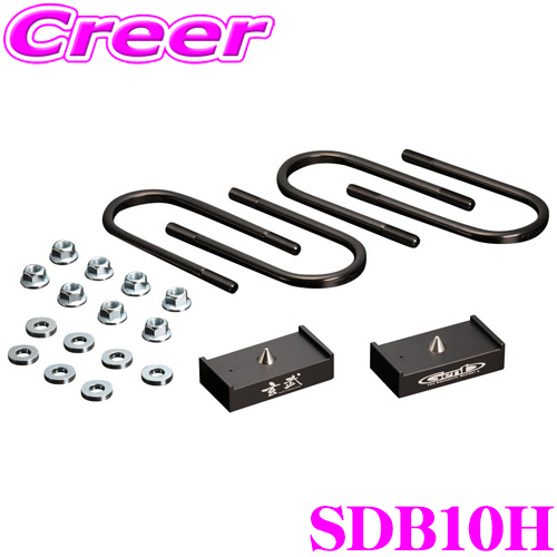 | 特殊製法により、他を圧倒する高張力を実現した専用Uボルト。14ミリ径の線鋼材にカチオン電着塗装を施すことで、抜群の耐久性を誇る。 | トップに打刻された『Genb』ロゴが、特別な機能を備えたUボルトであることを証明する。 | S45C材に熱処理を施した極厚ワッシャーを付属。型式やグレードによって異なるリーフスプリングの高さ違いにも対応。 | 振動や捩れが原因で発生する緩みを徹底解消するため「セルフロックナット」を採用。 |