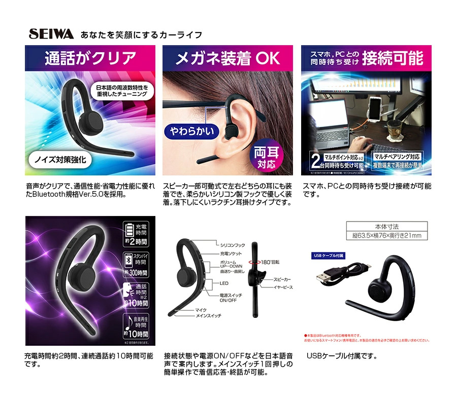 セイワ Bluetoothワイヤレスイヤホンマイク LINEUP