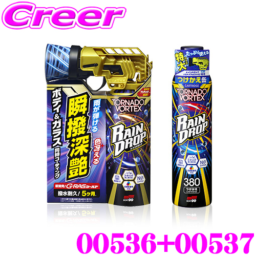 【レインドロップ トルネードヴォルテックス 商品説明】 ・遊び心をくすぐるトルネード噴射で使用感も作業性も大幅アップ! ・新たな艶成分が深い艶とつるつる感を実現します。 ・ボディもガラスも、超・耐久撥水効果! ・様々なパーツに利用できる多機能コーティングです。 ・プロコーティング施工車&全塗装にまでコーティング可能! ・リユース可能な噴射ヘッドで省ゴミ・省資源化に対応しています。 ・拭き上げ用にはマイクロファイバークロス「激吸水シリーズ」(別売)がおすすめ! ※グリルやホイールには直接スプレーせず、クロスにスプレーして拭き上げます。