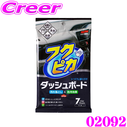 | ・ソフト99のフクピカダッシュボードです。 ・サッと拭くだけでホコリや手アカ、ヤニなどの汚れをしっかり落とすシートタイプです。 ・除菌剤配合なので、気になるニオイの原因となる雑菌も取り除けます。 ・デリケートな特殊塗装ダッシュボードも傷めず、つや消し調素材の風合いも損なわない、しっとりと落ち着いたツヤに仕上がります。 ・UVカット成分配合で劣化の原因となる紫外線からダッシュボードを守ります。さらに、静電気防止効果によってホコリの吸着も防止します。 ・7枚入りです。 |