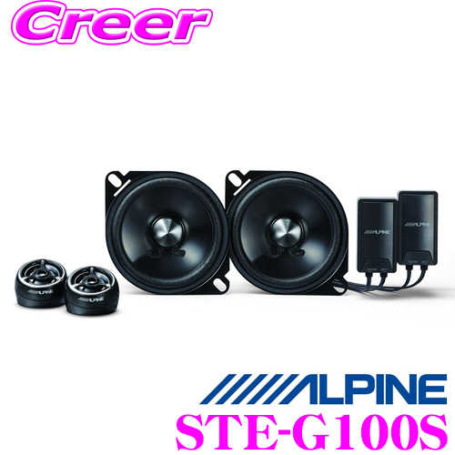 ・アルパインの10cmカスタムフィットスピーカー、STE-G100Sです。 ・10cmのカスタムフィットスピーカー、3.0cmP.E.I バランスドドーム型ツィーター、高品質ネットワークで構成されたセパレート2way。 ・ウーファーには高品位P.P.マイカインジェクションコーンを採用、これをスクエア・ボイスコイル・ワイヤー採用のハイパワー磁気回路によりパワフルにドライブ。ハイスピードかつリニアリティに優れた再生を実現します。さらに音波の整合させるフェイズプラグを備え、見た目の高級感以上にクリアな再生音を実現させました。 ・トゥイーターは従来モデルに装備されていたネットを排し、新たに専用イコライザーを採用。抜けが良く、歪みのない高音域再生を実現します。 ・ネットワークも別ケースとした本格的なものを採用。特注品の音響コンデンサー「SILMIC」を採用してなめらかでクリア、解像度の高い中高音域を再生します。 ・最大入力100W、定格入力20W。 ・純正スピーカーとの交換取付のほか、パワーアンプの追加やインナーバッフルでの取り付けなど更なるシステムアップによってさらに高音質を目指すことも可能です。