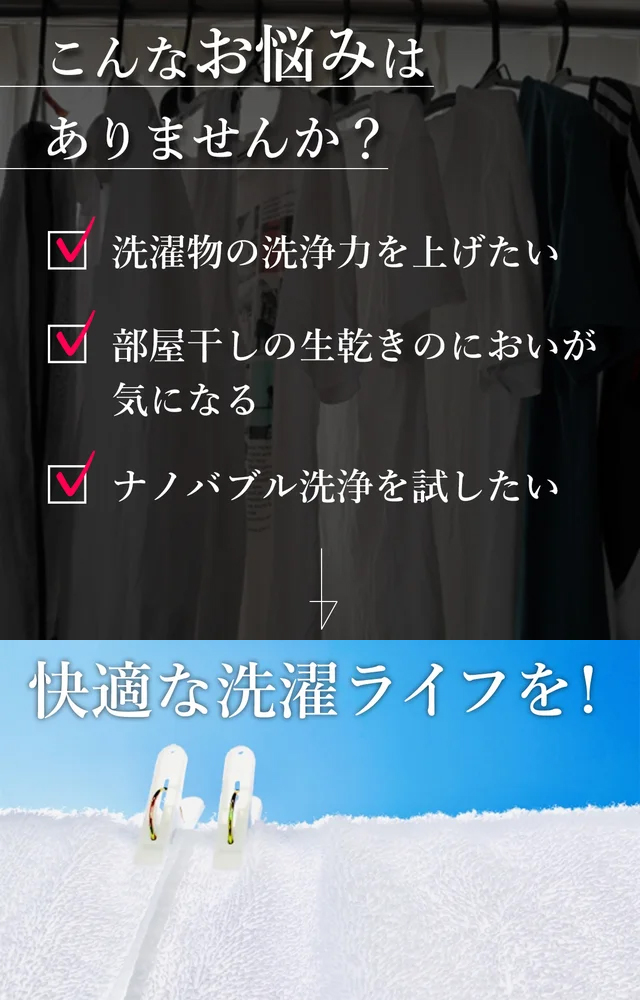 ・取付簡単!取付するだけで洗浄力UP・洗濯槽の汚れや生乾きの匂いが減少!