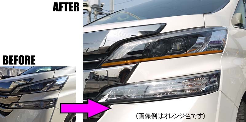 ・トヨタ 30系ヴェルファイア(H27/1〜R5/6)用のアイラインフィルムステッカー(パープルピンク下)です。