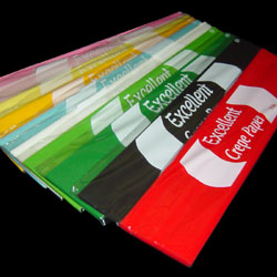 軽い力でおよそ元の長さの倍近くまで伸びます。この優れた伸縮性と鮮やかな色彩で、主にペーパーフラワーや人形のクラフト素材として使われています。
