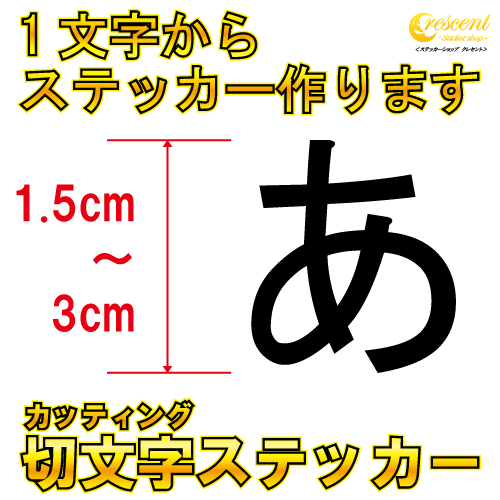1文字からステッカー作ります 日本語 1.5cm〜3cm カッティングシート 24色 切り文字 シール デカール スマホ 車 バイク 自転車 ヘルメット
