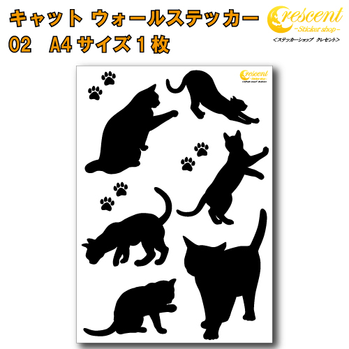 ねこ ウォールステッカー 02 猫 キャット cat モノクロ 白縁取り有